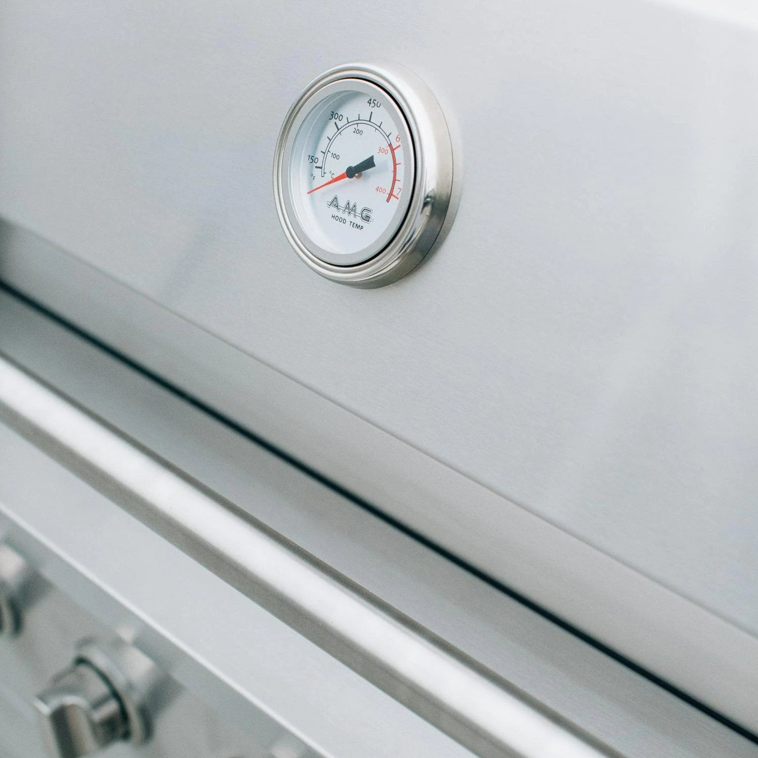 American Made Grills is backed by a Gold Standard Lifetime Warranty on construction and manufacturer defects, stainless steel construction, cooking grates, burners, burner covers, valves, flame tamers, heat zone separators, temperature gauges, hood springs, and briquette systems. All other parts, components, & electrical, including LED bulbs, wire harness & switches, power source wire, transformer, & interior halogen light wire & bulb are warranted for three (3) years. Labor not included.