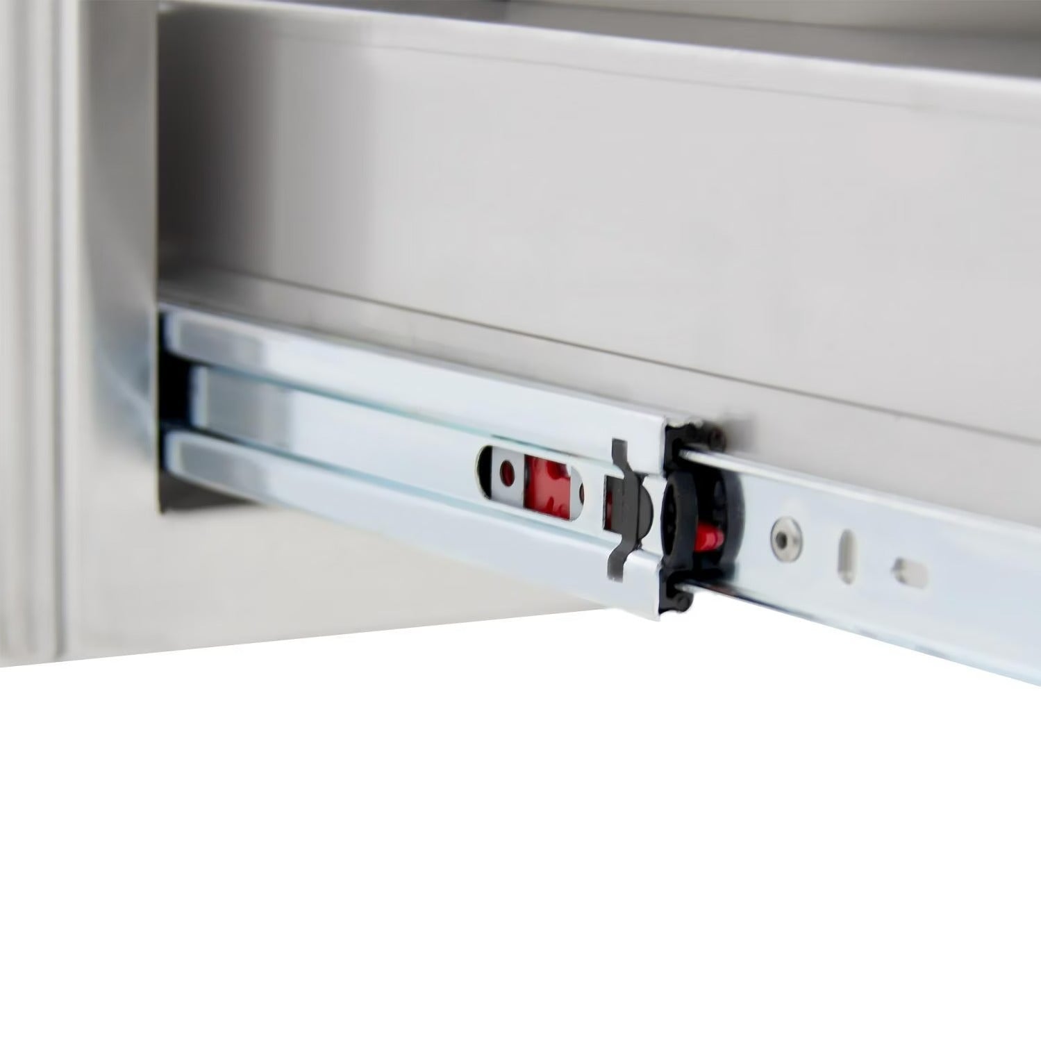 This Blaze trash can bin features commercial grade 304 stainless steel construction to withstand outdoor elements and a unique completely rounded bevel design that enhances strength and durability. At 13 7/8 inches wide, this drawer is designed with space in mind, making it ideal for smaller or congested outdoor kitchens. Conveniently hide the bin and gain easy access by pulling the roll out drawer open. This quality outdoor kitchen trash drawer includes a removable 42 quart trash bin. Blaze storage drawers are the perfect storage solution for any outdoor kitchen!