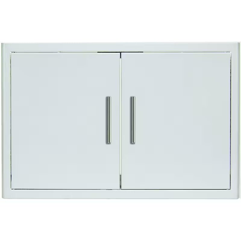 This Blaze Double Access Door features commercial grade 304 stainless steel construction for withstanding outdoor elements and a unique completely rounded bevel design which enhances its appearance. These quality outdoor kitchen access doors are double-lined accented with straight handles and feature a convenient paper towel holder inside the right door. Soft close hinges prevent the doors from slamming shut. Blaze access doors are the perfect storage solution for any outdoor kitchen! Door Opening Dimensions (In Inches): 33 1/4 W X 17 7/8 H.