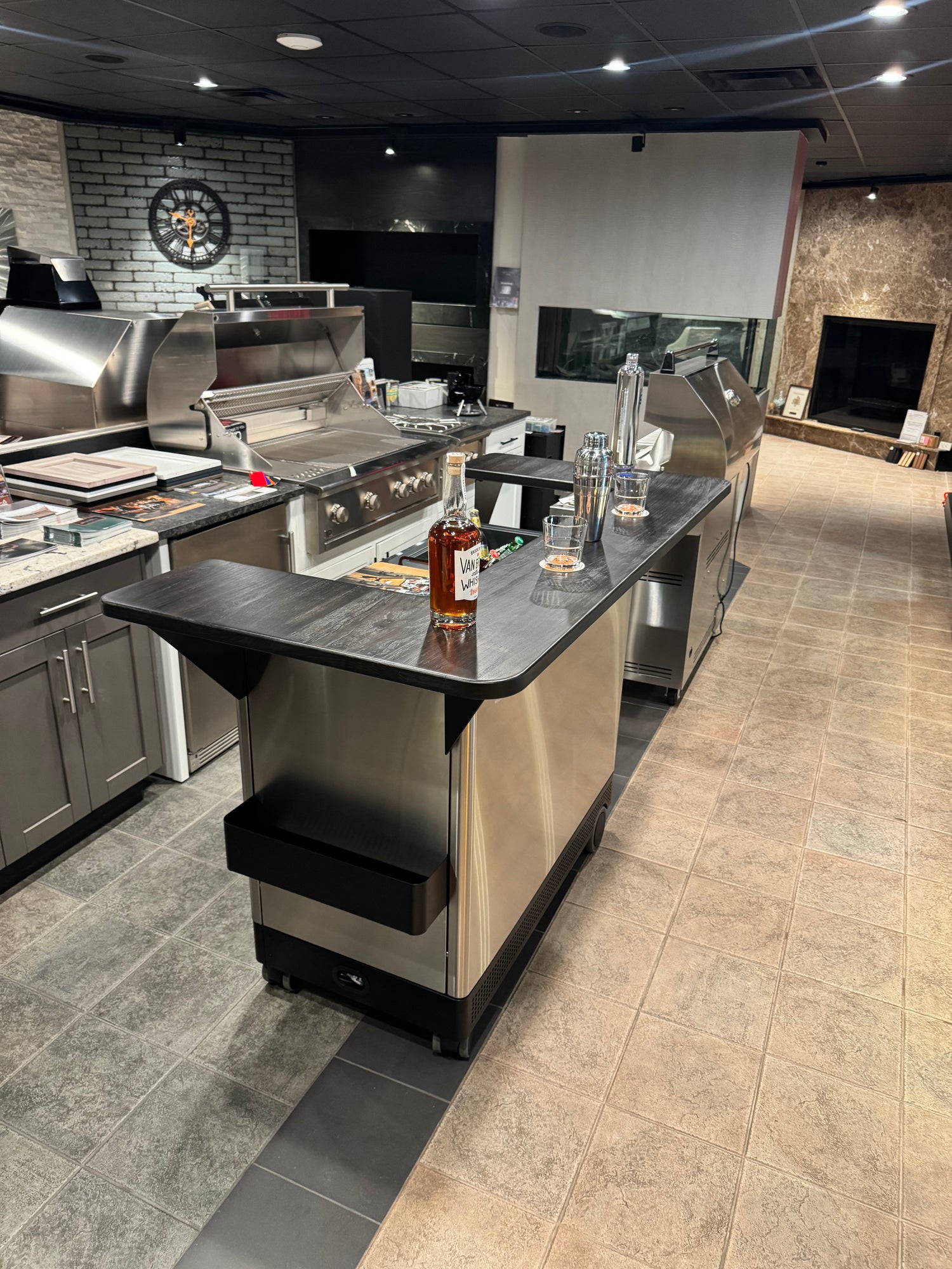 Built with professional grade stainless steel, it comes with spacious preparations and presentation areas and a dual-zone refrigerator compartment comfortably holding up to 39 bottles or 155 cans and up to an additional 22 bottles or 32 cans can be displayed in a spacious rotomolded presentation basket that will keep your bottles ice cold. The Dometic MoBar 550 is easy to place in the heart of the festivities with its heavy duty wheels and robust handle.