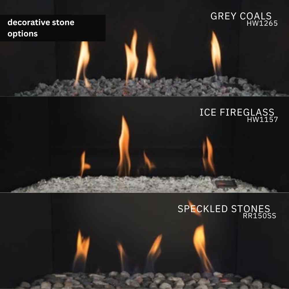 - Concealed Universal Burner: Sleek hidden burner for a clean, elegant flame display.