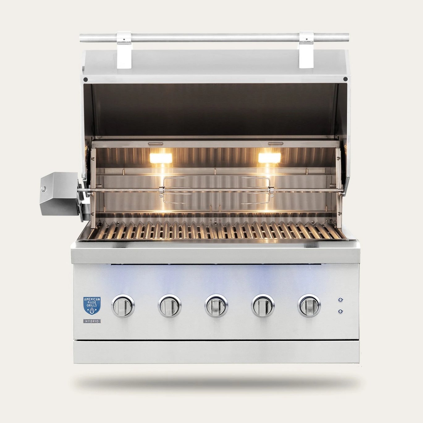 American Made Grills is backed by a Gold Standard Lifetime Warranty on construction and manufacturer defects, stainless steel construction, cooking grates, burners, burner covers, valves, flame tamers, heat zone separators, temperature gauges, hood springs, and briquette systems. All other parts, components, & electrical, including LED bulbs, wire harness & switches, power source wire, transformer, & interior halogen light wire & bulb are warranted for three (3) years. Labor not included.