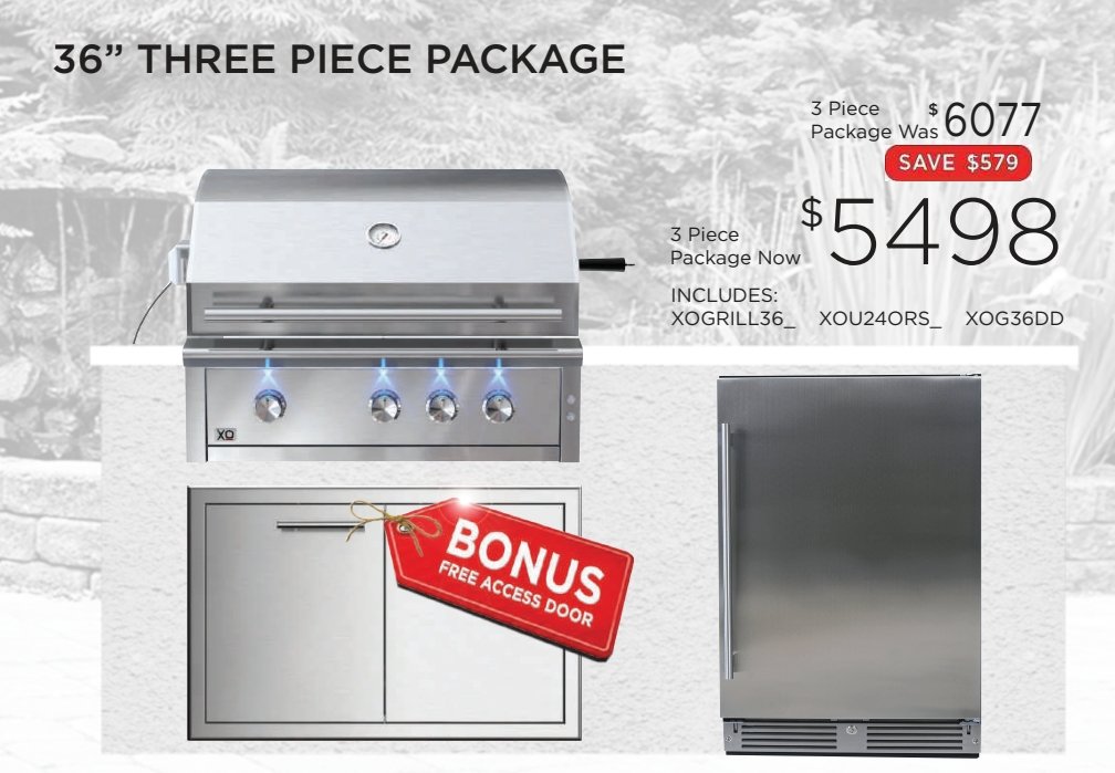 XO Pro Luxury 36 Inch Built-In Gas Grill Three Piece Package with Access Door & Refrigerator
