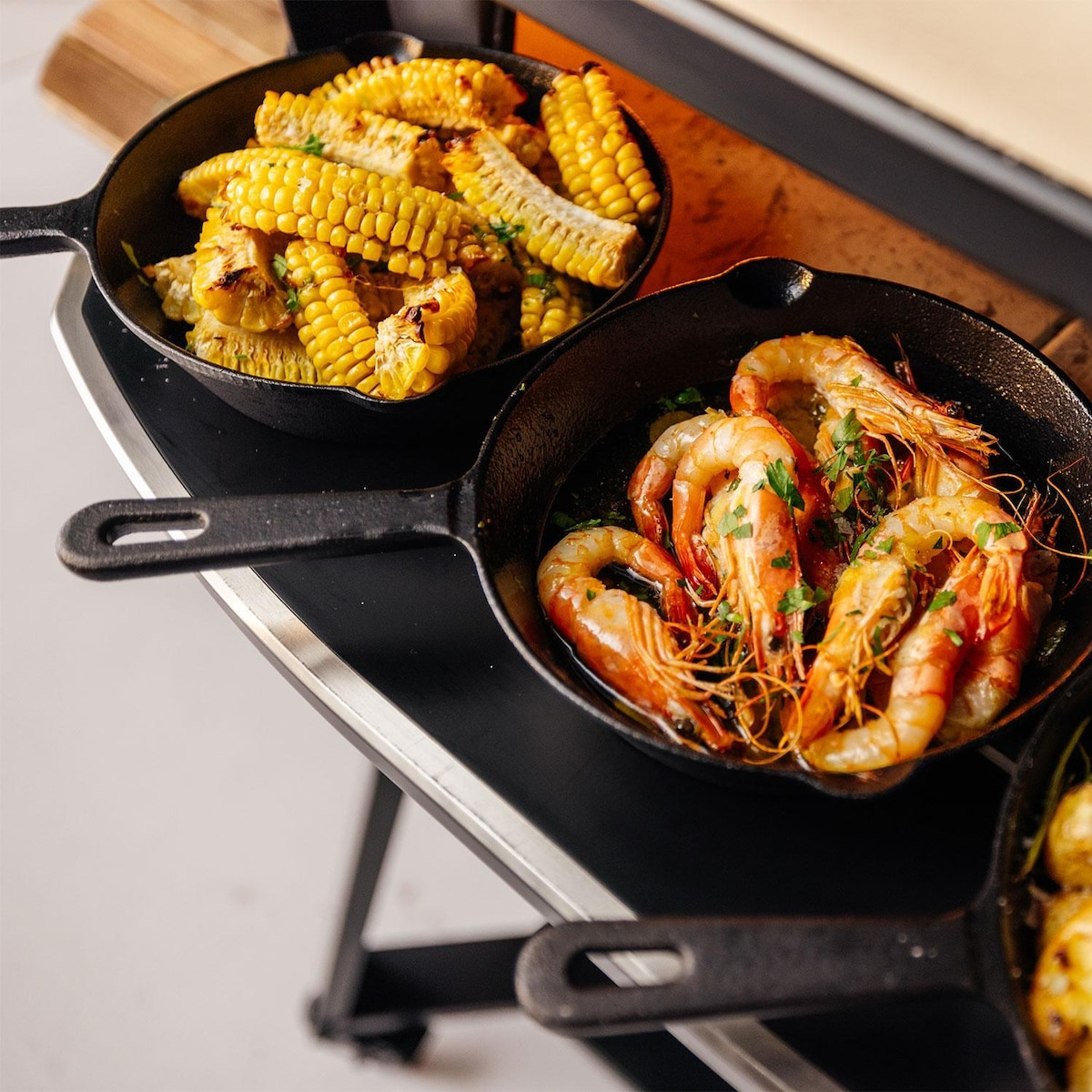 - Extra landing zone for turning pizzas, garnishing, or basting