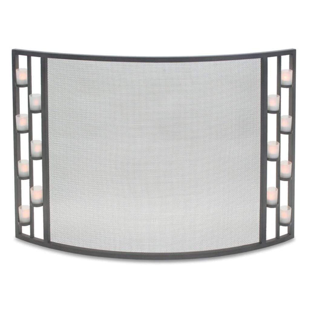 Introducing the Pilgrim 44" Natural Iron Candlewood Tea Light Bowed Screen – where safety meets sophistication.