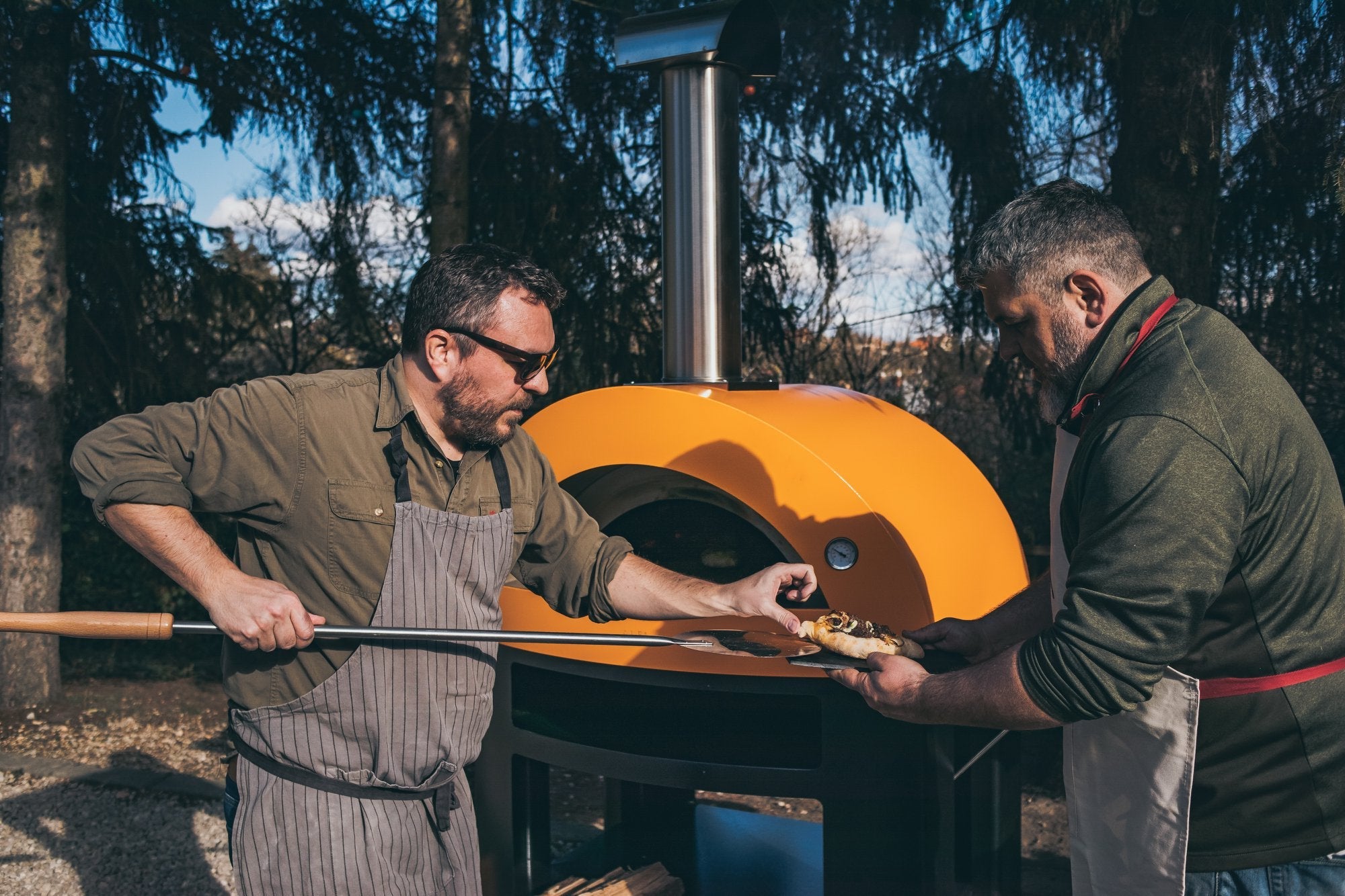 Besides the floor made of firebricks, the stainless-steel dome and the ceramic fiber insulation, Allegro is fitted with large folding shelves, a warming compartment and a firewood holder. The 4 casters make it easy to wheel it in any direction. With the Allegro semi-professional pizza oven, you take wood fire cooking to the next level.