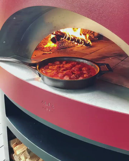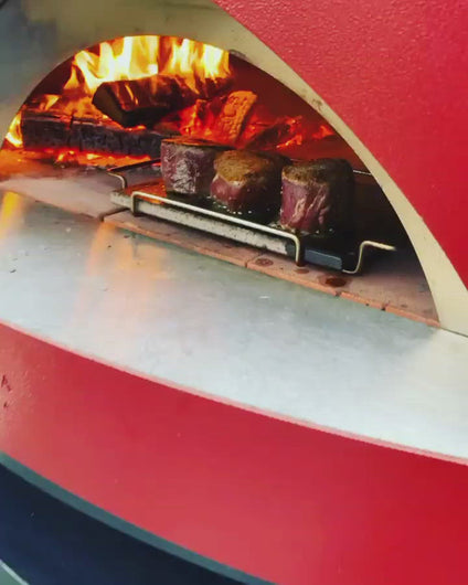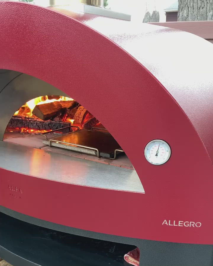 The red dome is made of powder-coated stainless steel and the cooking floor is made of refractory material to help retain heat while cooking. The high, arched shape of the dome allows the heat to remain trapped and cook food evenly while the built-in thermometer allows you to monitor internal temperatures. With no curing needed, you can cook anything in your Alfa pizza oven that you would normally cook in your kitchen oven including roasts, vegetables, desserts and more.