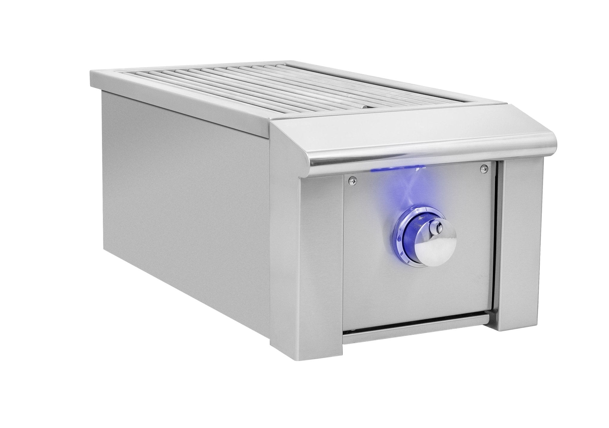 The Summerset Alturi series combines luxury with raw power, creating a new level of professional outdoor kitchen accessories. The Alturi infrared gas side burner features a sleek design, 304 stainless steel construction, and a heavy-duty stainless steel grate. The 15,000 BTU infrared burner heats quickly, reaching temperatures up to 1,600 degrees Fahrenheit for searing thick cuts of beef or pork with ease. It also includes a stainless steel lid to protect the burner when not in use. The infrared side burner must be connected to a Summerset Alturi gas grill for the LED lights to work.