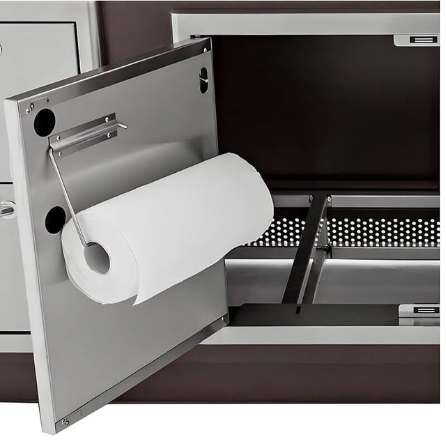 This Blaze Double Access Door features commercial grade 304 stainless steel construction for withstanding outdoor elements and a unique completely rounded bevel design which enhances its appearance. These quality outdoor kitchen access doors are double-lined accented with straight handles and feature a convenient paper towel holder inside the right door. Soft close hinges prevent the doors from slamming shut. Blaze access doors are the perfect storage solution for any outdoor kitchen! Door Opening Dimensions (In Inches): 33 1/4 W X 17 7/8 H.