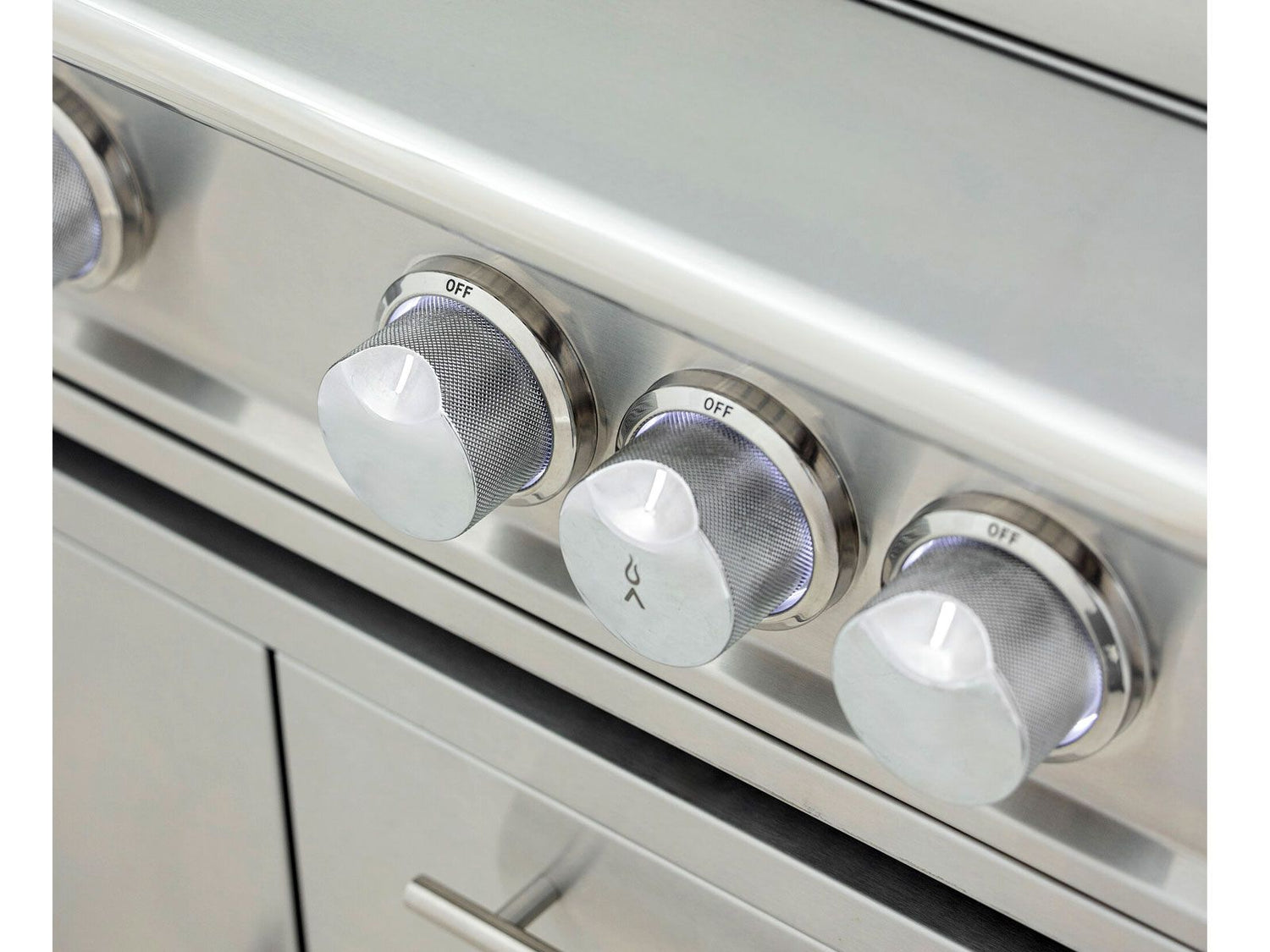 - Non-slip, knurled knobs feature LED lights with temperature indicators for safety