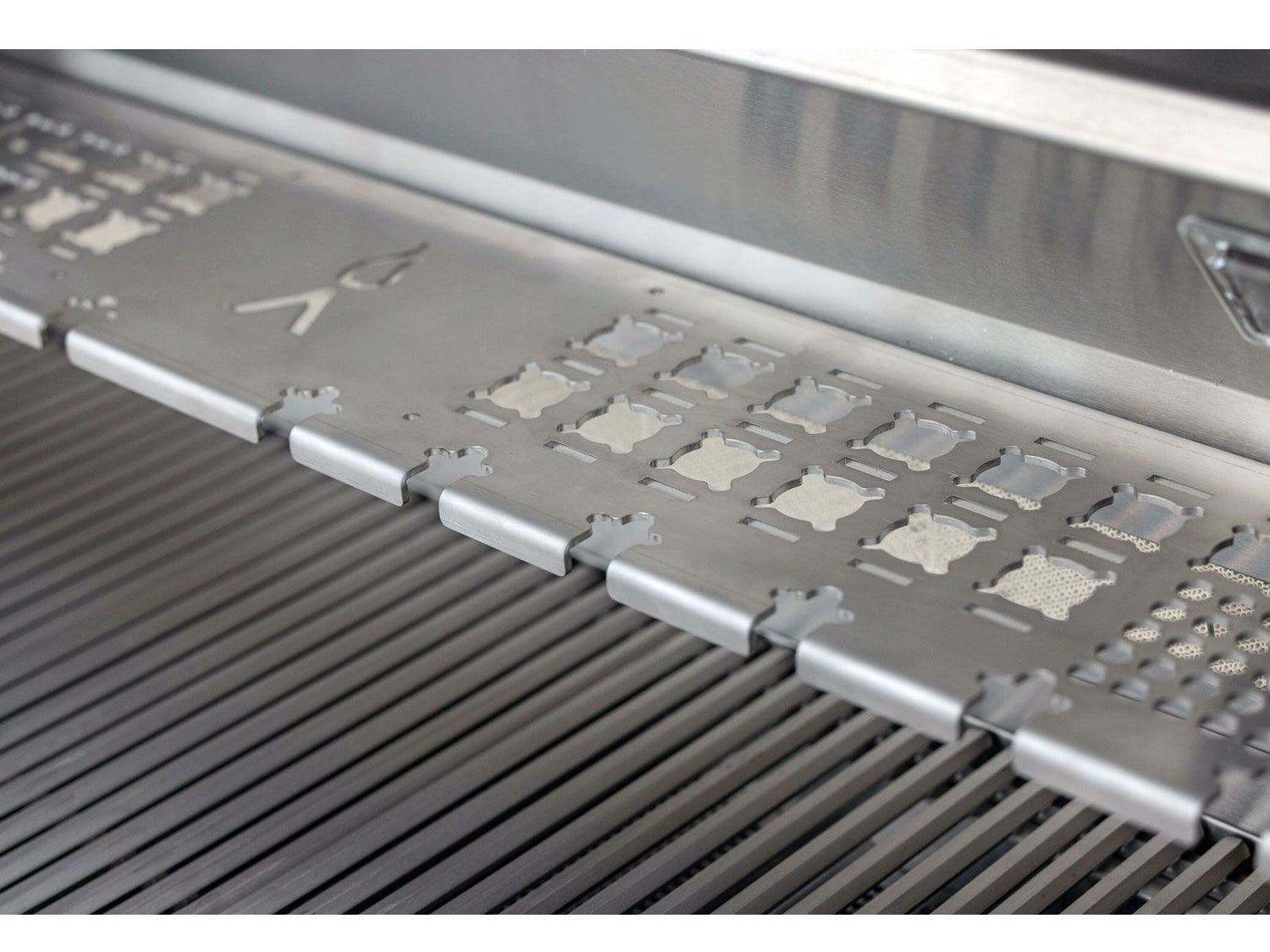 - Stainless steel flame tamers ensure even heat distribution across the grill surface