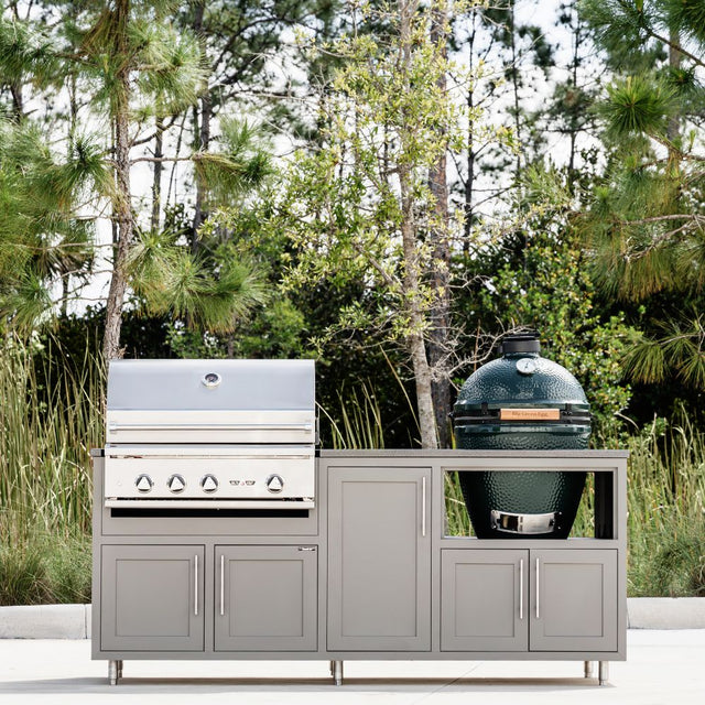 Challenger Designs Coastal Series GDK Outdoor Island with Delta Heat 32" Gas Grill & Large Egg, Grey Glimmer Cabinet Color - Liquid Propane is backordered and will ship as soon as it is back in stock.