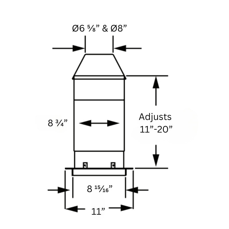 .020” aluminum inner wall. .018” galvanized steel outer wall. Painted outer walls made of laserwelded .018” galvalume steel. Caps also available in stainless steel and copper. Outer pipe brings combustion air to the appliance. Inner pipe exhausts flue gases to the outside. Gaskets or sealants not required (unless specified by the appliance manufacturer).