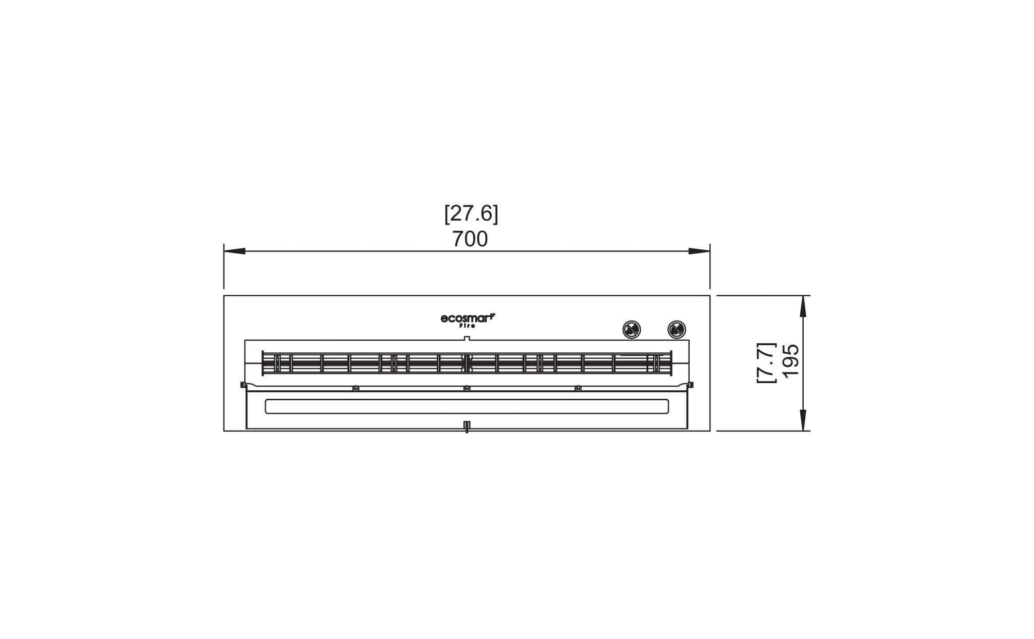 - MODEL DIMENSIONS in [mm]: L 27.6 [700]W 7.7 [195]D 4.4 [112]
