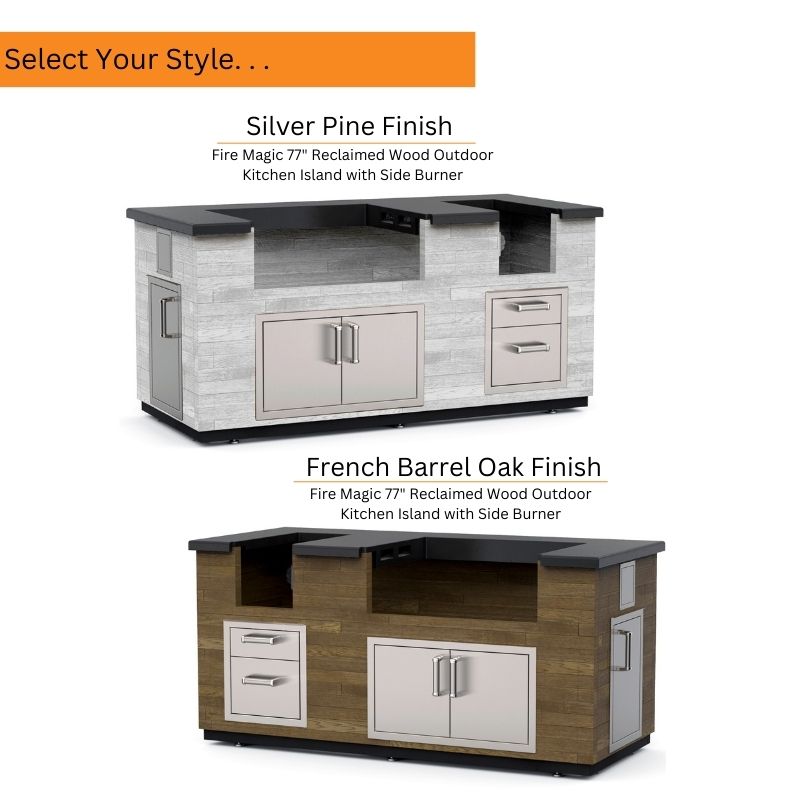 Fire Magic 77" Reclaimed Wood Outdoor Kitchen Island with Side Burner