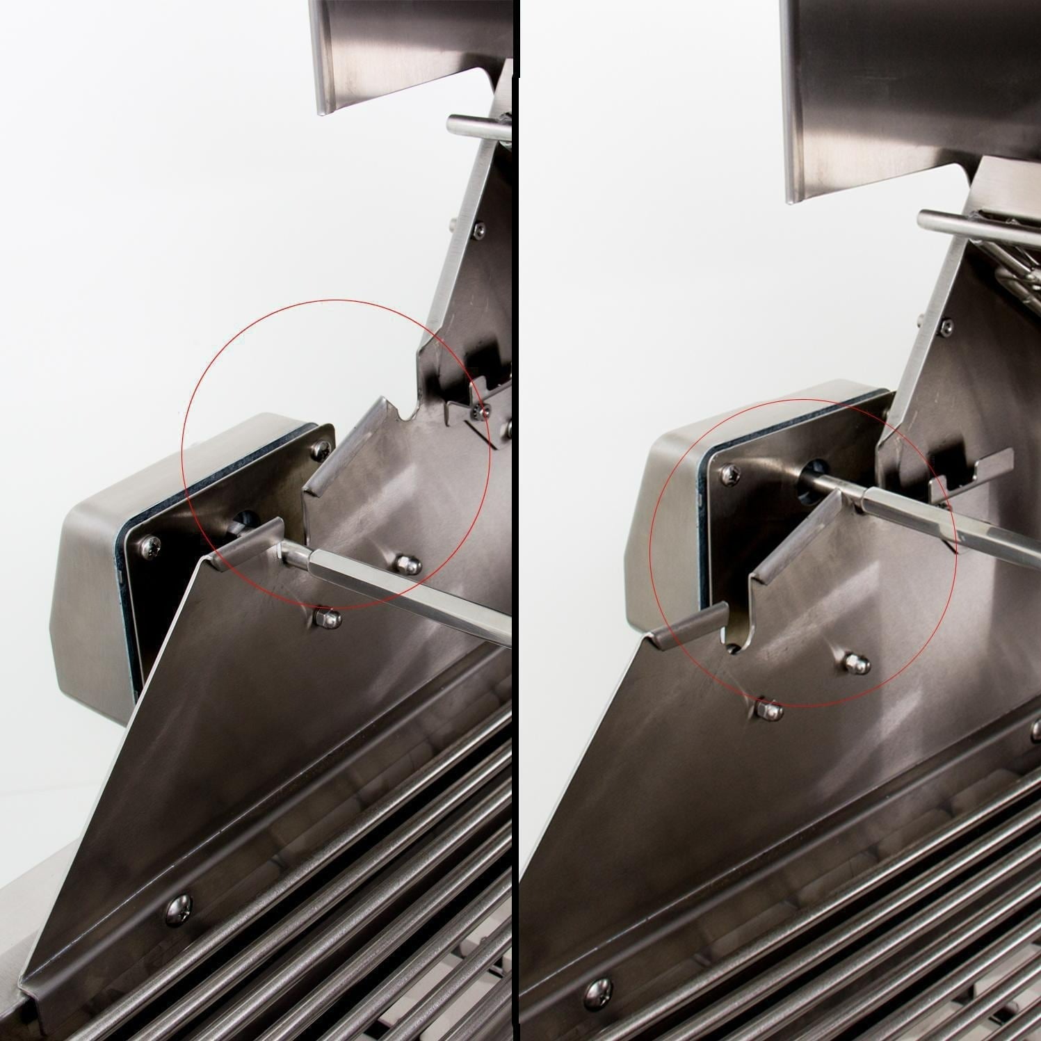 • Unique two-position, three-speed rotisserie with infrared burner produces slow roasted perfection