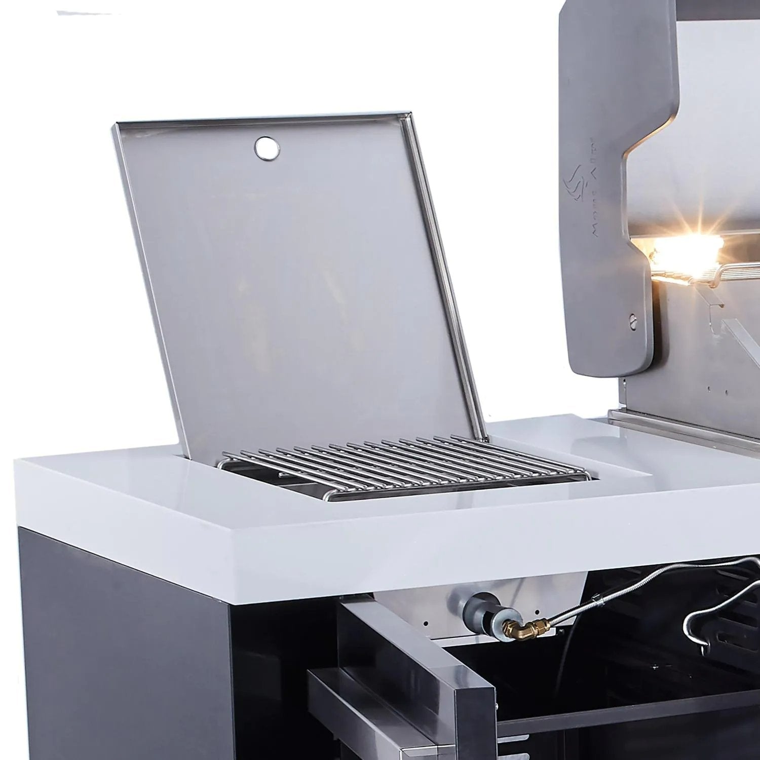 Mont Alpi offers a limited lifetime warranty under which 100 percent of the cost of the stainless steel roasting hood will be covered for fifteen (15) years, the stainless steel cooking grids for fifteen (15) years, the stainless steel tubular burners for five (5) years, the stainless steel firebox for two (2) years, and the electronics for one (1) year. After the stated period the owner will cover 45 percent of the list price for the part required. Labor is not included.