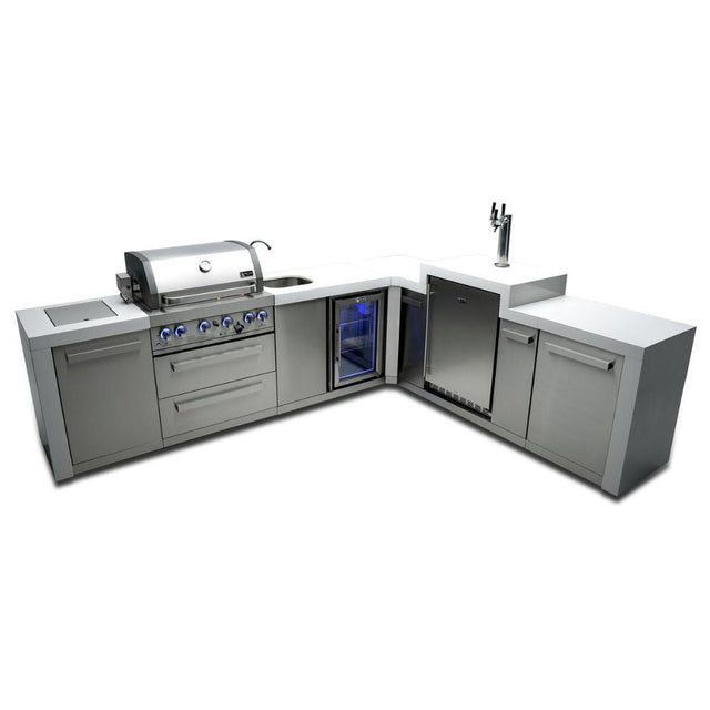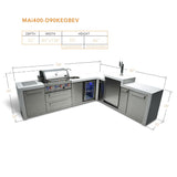 Mont Alpi MAi400-D90KEGBEV Propane 4-Burner Deluxe Island with 90-Degree Corner, Kegerator & Beverage Center