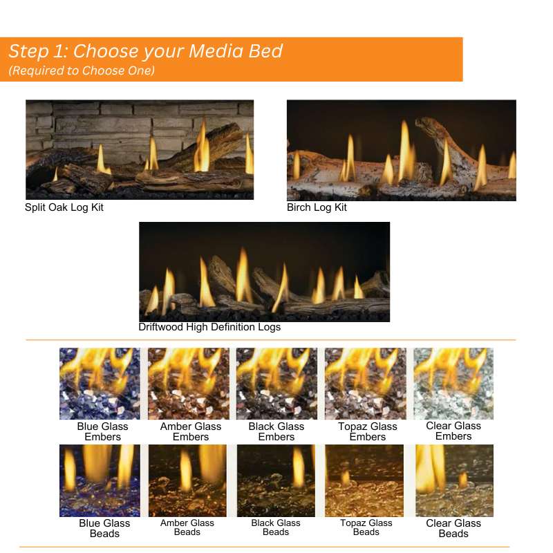 - Choice of optional log kits: Driftwood, Birch, or Oak to complete the look