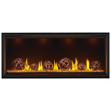 - A linear fireplace that offers greater efficiencies (increased flame height without the added fuel consumption)