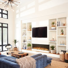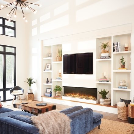 Expand the possibilities of design and installation with the Napoleon Trivista 60-Inch 3-Sided Built-In Electric Fireplace. This stunning built-in fireplace can be installed with 2 or 3 end panels, giving you plenty of options to construct a specific look tailored to your style. No longer confined to traditional installations, the Trivista 3-Sided electric fireplace brings warmth and comfort and adds a stunning, modern accent to any room. Further explore design possibilities with the included Northern Wood log set, crystals, or a combination of both. Chose from blue, orange, or yellow LED flame colors and set your preferred flame brightness and speed to create any mood. Effortlessly adjust these settings, as well as the heater, ember bed colors, and timer settings with the included multi-functional remote control. Thanks to the motion proximity sensors, the touch screen control panel will only appear when you approach the fireplace, maintaining the sleek and contemporary look. By hardwiring with 240V, you can achieve up to 10,000 BTUs, yielding the highest heat output in its category! CSA certified, the Trivista 60-Inch 3-Sided Built-In Electric Fireplace is both safe and efficient, with plenty of design opportunities sure to elevate any room.
