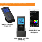 The Napoleon Pro Flame II Remote and eFire Bluetooth App are included as standard with your Vector Fireplace. Both control options provide control options provide full customization of your fireplace, including a full-color wheel for ember bed LED lights, on/off function, flame height, and blower speed.