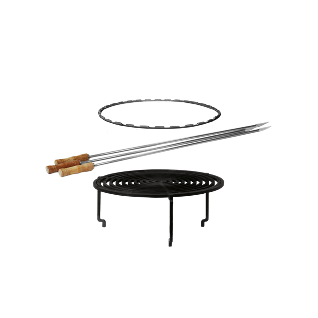 For even more versatility, we have the OFYR 100 Grill Accessories Set. The standard set features the Grill Round 100, Horizontal Skewers Ring 100, and Skewers 85.
