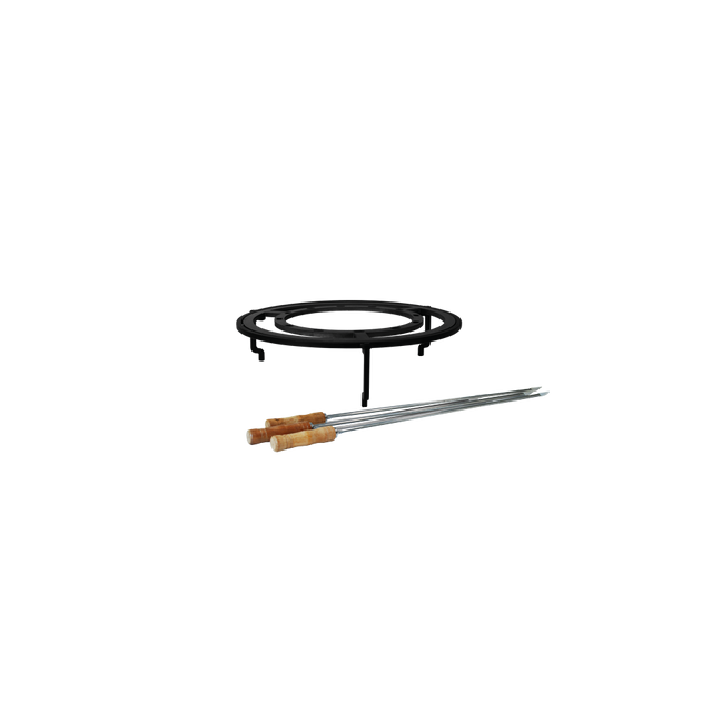 Convert your OFYR Classic 100 into a Brazilian style barbecue with this set of three skewers in a circular steel stand. The skewers have wooden handles for easy handling and allow slow cooking of meat directly over the fire.
