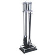 - 4 tools including natural Tampico brush, tongs, shovel, and poker