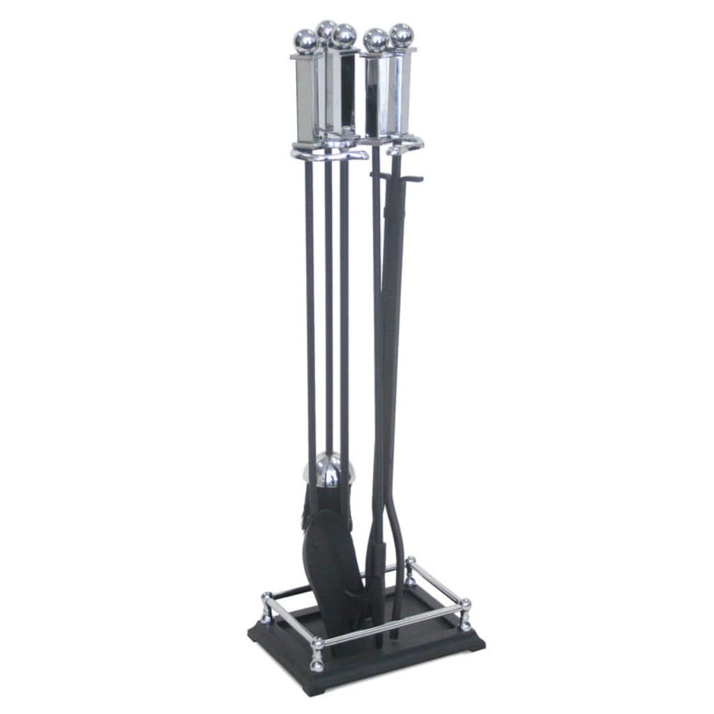 - This gorgeous classic design fireplace tool set comes in a Polished Nickel finish on the handles, yolk, and base rail.