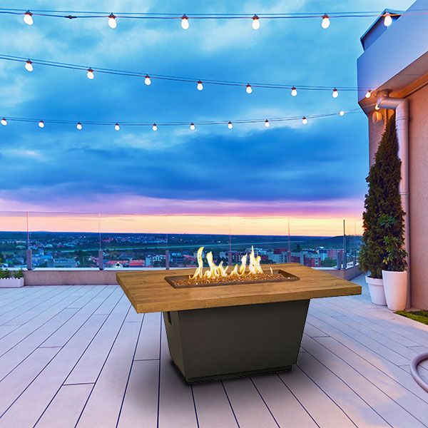 American Fyre Designs Rectangle Cosmopolitan French Barrel Oak Fire Table