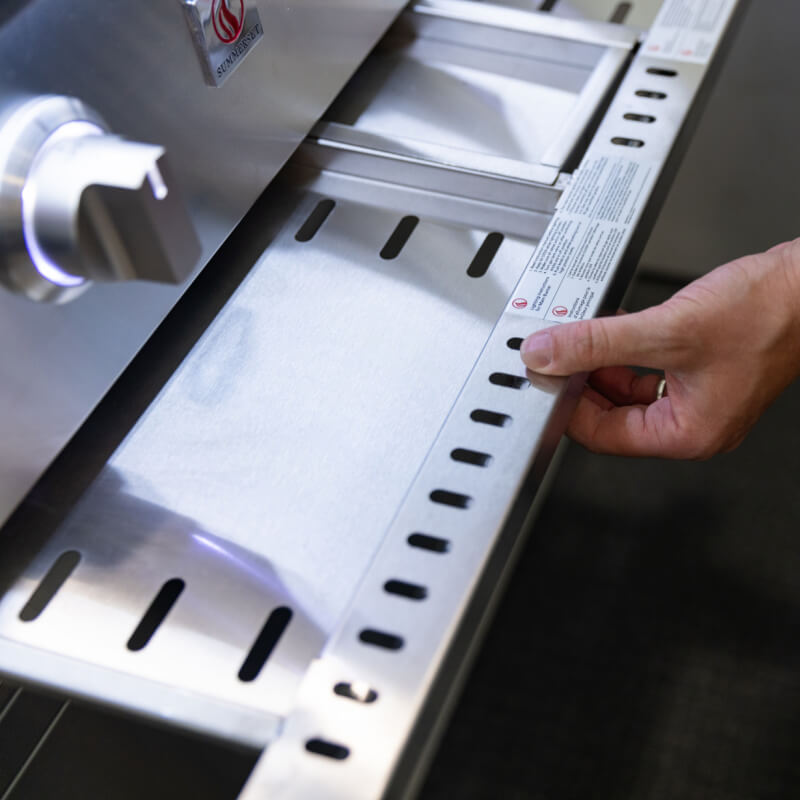 Safety is paramount and Summerset Grills make sure you stay safe while you grill up a feast. Featuring its new exterior LED strip light with white and red bezel lighting, which clearly indicates whether the burners are off or on. This not only enhances the grill's sleek, contemporary look but also provides a practical safety feature. In addition, the new rear burner flame-out system that stops the gas supply if the flame is not detected.