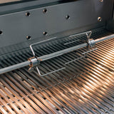 The new 10,500 BTU angled infrared rotisserie burner adds another layer of versatility, accommodating both the warming rack and providing the capability for slow-roasting meats with the included rotisserie kit. Your rotisserie kit features 40 lbs. capacity motor that plugs into your nearest electrical outlet for handling heavier and larger BBQ foods.