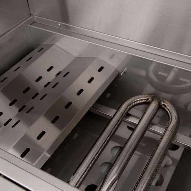 - Two (2) 304 stainless steel U-tube burners totaling 52,000 BTUs for high performance grilling and even heat distribution.