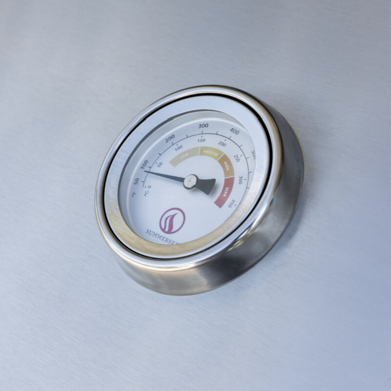 | Thermometer | 3-Inch Analog Temperature Gauge on Grill Hood |