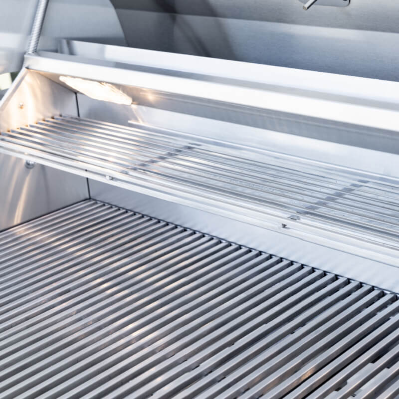 The TRL Pro 40 is powered by five 304 stainless steel U-tube burners, each delivering 20,000 BTUs for a total of 100,000 BTUs of intense, even heat. Paired with heat zone separators, this grill gives you the freedom to cook multiple dishes at different temperatures all at once—whether you're searing steaks, grilling vegetables, or slow-cooking ribs. The heavy-duty 8mm square cooking grates are designed for superior heat retention, even cooking, and preventing food from falling through.