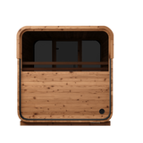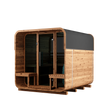 The Thermory No40 is a 6-person square sauna that redefines outdoor relaxation. Built with precision-milled Nordic spruce and a striking full tempered-glass front, this spacious unit fills with natural light and warmth. Featuring deep, tiered benches, it offers the perfect environment for shared moments or solo reflection, all while lying back in total comfort.
