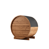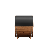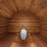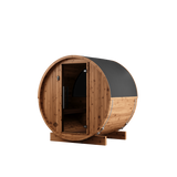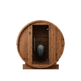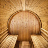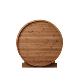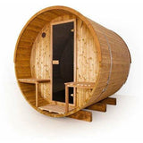 2-person, 6' diameter and 5' deep interior is a premium-quality DIY Barrel Sauna Kit. Natural light from the glass door and panoramic window illuminates this beautiful space. Includes comfortable benches for added convenience. Quality materials and superb engineering make this the very best outdoor sauna. Sauna heater not included.
