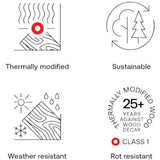 - Chemical-free thermal modification naturally enhances every board to its core
