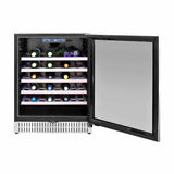 TrueFlame 24 Inch 5.3 Cu. Ft. Outdoor Single Zone Wine Cooler is designed to pair perfectly in your outdoor kitchen underneath your countertop with your base cabinets. It is ingeniously engineered with Front Ventilation for safe built-in installations in outdoor kitchens by allowing heat to escape through the front, preventing overheating and efficient cooling. Compressor Cooling System is at the heart of this cooler, responding quickly and efficiently to any external temperature changes. It's powerful enough to maintain a consistent temperature, no matter how hot it gets outside, ensuring your wine stays in perfect serving condition. The system is ideal for outdoor kitchens, as it's designed to easily handle fluctuating outdoor temperatures. Keep your wines at a consistent and perfect temperature inside, unaffected by the fluctuating conditions of the outdoor setting.