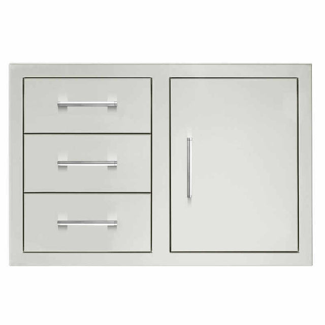 The TrueFlame 33 Inch Flush Mount Triple Drawer and Access Door Combo is a versatile and essential component for any outdoor kitchen or grill island to maximize storage and organization. This triple-drawer combo provides a perfect blend of storage space: the triple drawers are great for keeping grilling tools and accessories neatly organized, while the larger cabinet space is ideal for bulkier items like gas tanks, valves, or cookware. The 33-inch combo is built from 304 Stainless Steel from top to bottom for ultimate protection against the outdoors and wear and tear from use. This rust-resistant outdoor combo has ultimate durability and a professional modern look perfect with your TrueFlame Grill and other storage components.